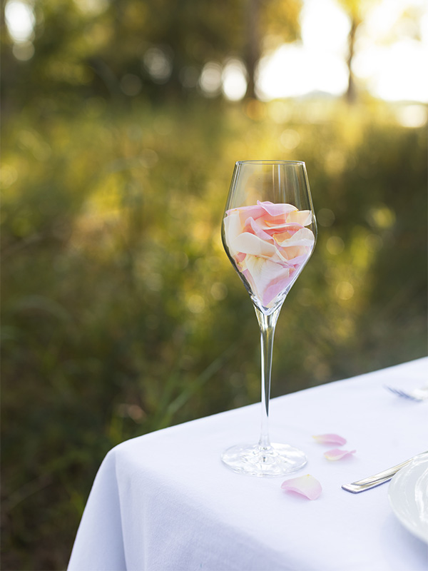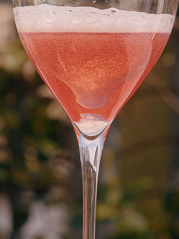 Cristallino, dal colore salmone rosato con riflessi bronzati, perlage fine e persistente. Floreale, fruttato e fragrante con sentori di rosa, ibisco pesca, pompelmo rosa, mela annurca e ribes rosa. Intenso, equilibrato ed elegantemente persistente.