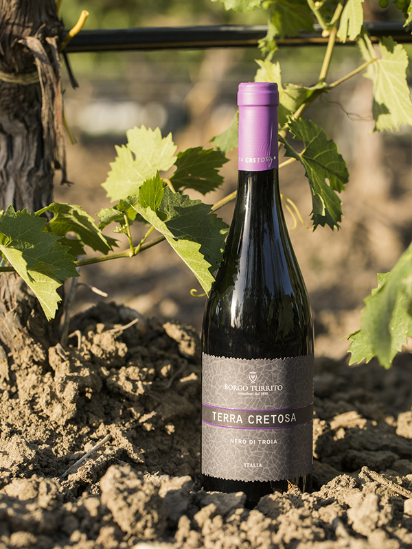 Ottenuto da un’accurata selezione di Nero di Troia coltivato in terreni argillosi vicini al torrente Cervaro. Rosso rubino intenso, con profumi di frutta rossa matura, tannino morbido e vellutato.
